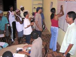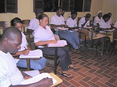 Diariamente 3 turmas de 60 alunos são alfabetizadas em curso de seis meses. São pessoas humildes de toda parte da região que estão vindo à escola a pé e de bicicleta. Não há outro espaço comunitário igual em toda a Orla de Camaçari. Duas turmas estudam no horário noturno, pois são trabalhadores empregados na área.