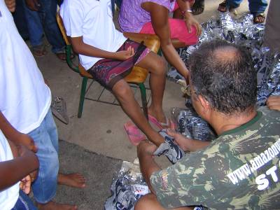 Em parceria com a Fundação Rathaplan e o Exército Brasileiro, o Instituto Planeta Água realizou a distribuição de tênis, às crianças carentes da Escola Municipal de Barra do Jacuípe, no dia 7 de março de 2005. Clique nas imagens para ver em tamanho maior.